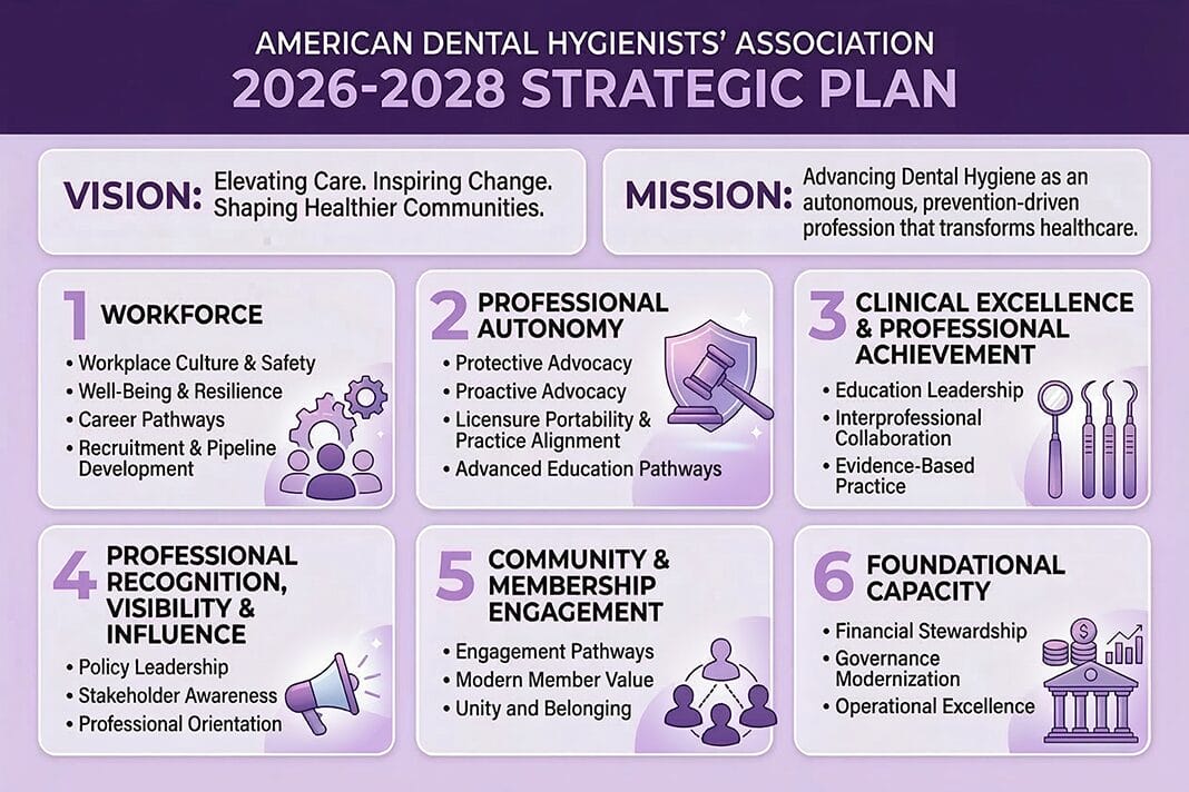 CHICAGO, March 11, 2026 — The American Dental Hygienists’ Association (ADHA) released its 2026–2028 Strategic Plan, establishing a new mission and outlining priorities for the association and the dental hygiene profession through 2028.