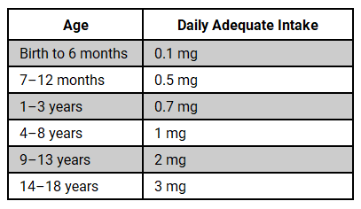 Adequate intakes (AIs) of fluoride and other nutrients are developed by the National Academies of Sciences, Engineering, and Medicine’s Food and Nutrition Board. The recommended daily AIs for fluoride are established to both optimally reduce dental caries and prevent adverse effects such as dental fluorosis, and these recommendations vary by age.4