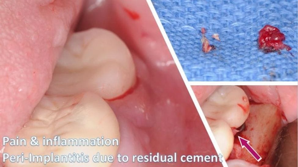 This is to prevent an emerging complication known as “floss induced peri-implantitis.” Several case reports have been published on floss remnants found wrapped around the implant and trapped in the peri-implant crevice. Subsequently, this flossing method should not be advised.9-11