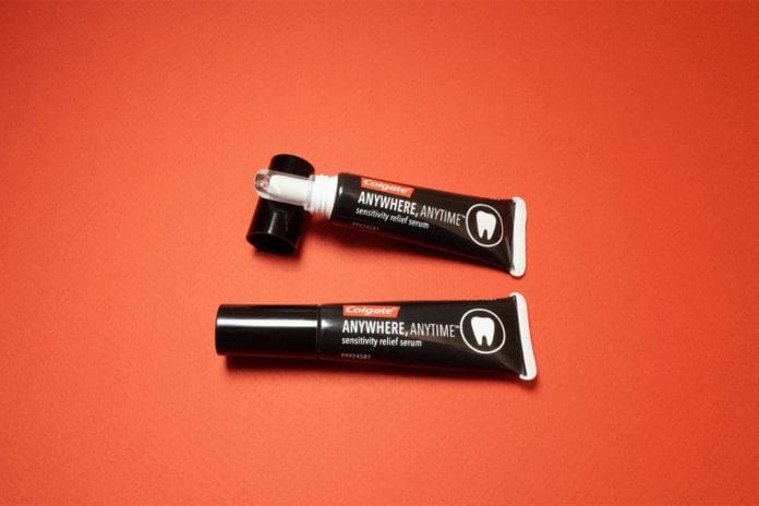 Anywhere Anytime by Colgate is instant relief. Apply the thin serum and rub in for one minute and do not rinse it off, then instant desensitization! This product can be used at the start of the appointment on areas the patient knows are sensitive, or as the appointment progresses and sensitive areas are encountered. Patients undergoing scaling and root planing treatment can quickly have the serum applied postoperatively to decrease potential sensitivity.