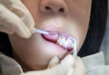 Fluoride decreases dentinal permeability by precipitation of calcium fluoride crystals inside dentinal tubules.3 These crystals are partially insoluble in saliva making fluoride a good desensitizing option. Fluoride may be recommended as part of an at-home toothpaste or mouth rinse, or as an in-office varnish application.