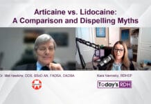 Potassium salts diffuse along dentinal tubules working to decrease the excitability of intradental nerve fibers by blocking axionic action. Potassium citrate 5%, potassium citrate 5.5%, and potassium chloride 3.75% can be used interchangeably and are more effective than fluoride alone.2 Potassium nitrate 5% is most commonly found in the United States because it is the only ingredient approved by the FDA and validated for the relief of sensitivity by interruption of neural response to pain stimuli.3 Studies show potassium nitrate 5% must be used twice daily for at least two weeks for a measurable reduction in sensitivity, and four to eight weeks for pain reduction.2 The downside of potassium salts is solubility; the ingredient is only effective when potassium ion concentrations remain high.1 If this ingredient is effective in reducing a patient’s dentin hypersensitivity, continued long-term use can be recommended.