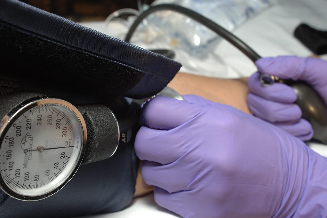 Most importantly, the placement of the blood pressure cuff is critical. Removing clothing that may obstruct the cuff placement and the proper position of the cuff while supporting the patient’s arm in an elevated position are imperative to an accurate blood pressure reading. Proper cuff position includes placing the arm cuff where the middle of the cuff is level with the right atrium and midpoint to the sternum.