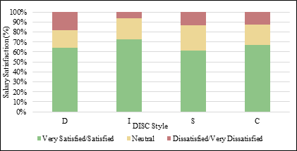 Participants who were assessed as exhibiting a single, dominant personality style totaled 1,032. The remaining 248 were found to have an equal combination of multiple styles. Of the four personality profiles, D (dominant) personality types were the smallest group at 5%. I (influencing) personalities came in at 8%, and C (conscientious) respondents came in at 23% of respondents. The overwhelming majority, 64% (659 respondents), scored as S (steadiness) personalities.*