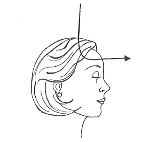 At every syllable (sound), visualize the sounds like the capital “L.” The sound starts in the center of the top of your head then moves out the middle of your forehead in a sweeping motion, looking similar to a capital L.