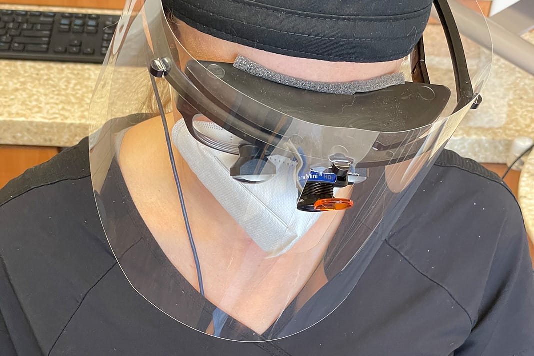Thirty months after the initial outbreak of COVID-19, some of the dental workforce has resorted back to pre-pandemic PPE armamentariums and opted to practice without a face shield. Many hygienists express difficulty using a face shield due to an inability to wear it over their loupes and headlight comfortably as well as visibility issues such as glare.