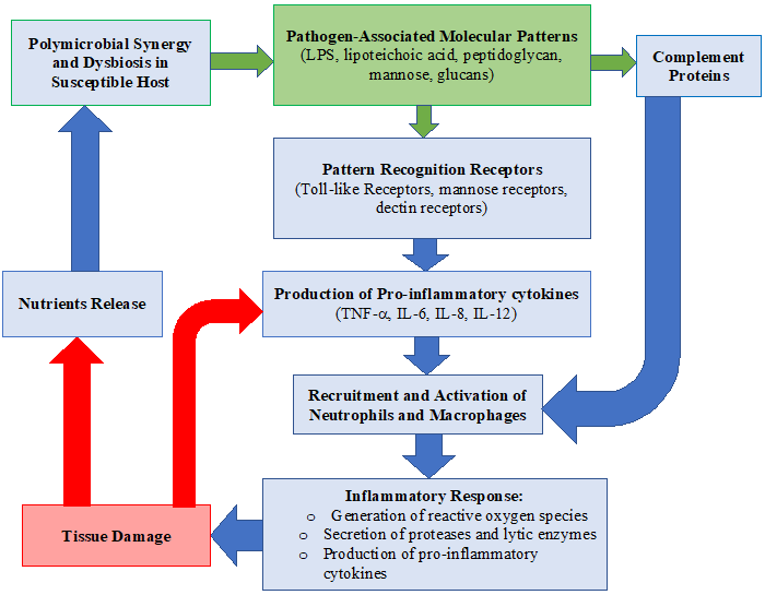 Ultimately, this model shows that subgingival plaque cultured from a healthy periodontal pocket has the same potential as subgingival plaque found in diseased sites to produce inflammation. However, the host immune response must be diverted by keystone pathogens, and colonization is then achieved by accessory pathogens and over-activated by pathobionts. Therefore, the pathogenesis of periodontal disease is based on polymicrobial synergy and dysbiosis.