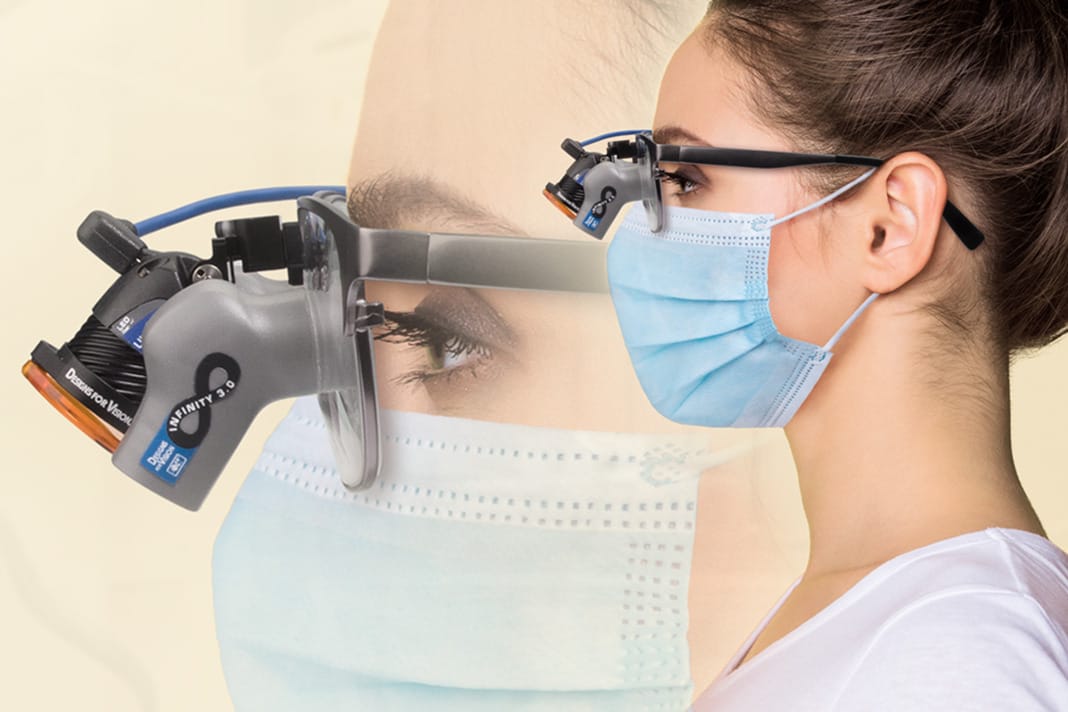Standard loupes are a great option, but even better are ergonomic loupes, such as Designs for Vision’s Infinity Vue Loupes. They allow for a wider range of vision, allowing the clinician to view an entire arch. This is due to their expanded field optics. Infinity Vue Loupes are available in 3.0x, 3.5x, and 4.5x magnification. Infinity Vue Loupes allow the clinician to keep the head, neck, back, and shoulders in a completely upright position, which is why the magnification is higher. Though this may seem high to some, your position is further from the patient, which will require higher magnification.
