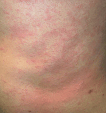 Accompanied with the fever is a rash that generally starts on the neck and face and spreads to the legs, arms, and trunk.6 The rash is red, raised, blotchy, itchy, and looks like a sunburn (hence the name scarlet) and feels like sandpaper (see Figure 2).