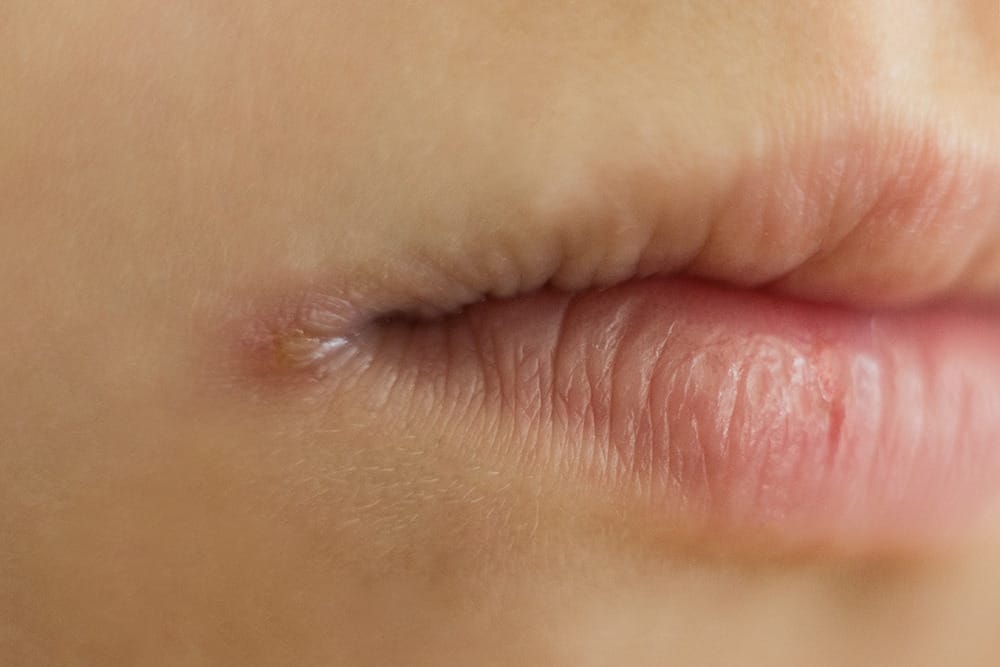 Angular stomatitis is commonly known as angular cheilitis (see Image 2). It is the cracking, crusting, blistering, or oozing of the corners of the mouth caused by a yeast infection such as candida, a bacterial infection such as staphylococcus aureus, or a viral infection such as herpes simplex cold sores. This could cause soreness, redness, or bleeding from constant wetting with saliva, deep furrows, ill-fitting dentures, uncontrolled diabetes, steroid inhalers, or poor nutrition.5