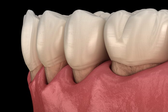 Recession is a common gingival tissue problem resulting from the apical migration of the marginal gingiva.3 As presented by Mercado et al., gingival recession is highly prevalent throughout the worldwide adult population, ranging in incidence from 30% to 100%.2 This results in the exposure of the root structure, often leading to sensitivity and creating an increased risk for cervical decay.3 Etiologies of recession include “plaque-induced inflammation, mechanical abrasion, and trauma.”2