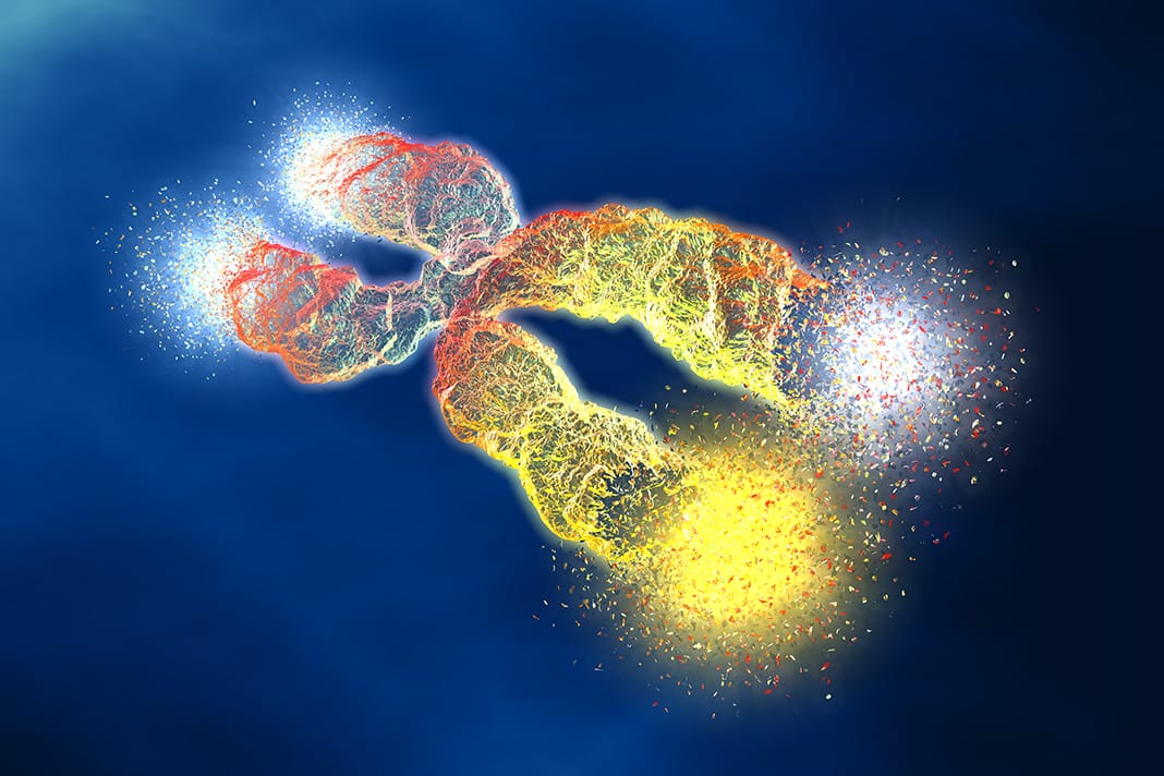 Aging is the accumulation of damage, but telomeres, the protective end cap of chromosomes, help keep our cells youthful. As they protect your chromosomes day by day, they get shorter bit by bit. By the time you reach middle age, there can be a lot of telomere damage. You may notice wrinkles in the skin, and even the immune system is beginning to wear down.