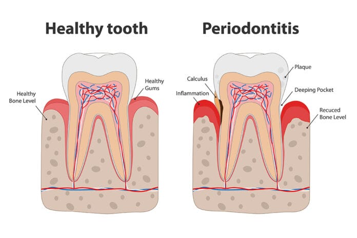 Additionally, it was believed that one or more of the “red complex” bacteria (Porphyromonas gingivalis, Treponema denticola, Tannerella forsythia) must be present in the biofilm colony for destruction to occur.1 We also knew that host-specific, genetic, environmental and lifestyle factors, such as tobacco use, poor nutrition, diabetes, and stress, resulted in impaired immune response and influenced the development and progression of periodontal disease.2